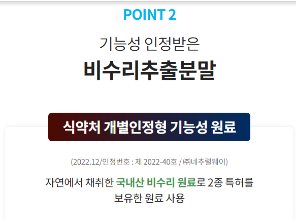 더군다나 비수리추출분말을 홍상환을 만드는 기술과 접목하여 먹기 편하게 나왔다는 거예요^^