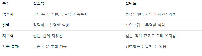 아래는 주요 립화장품의 종류와 그 기능에 대한 상세 설명입니다.