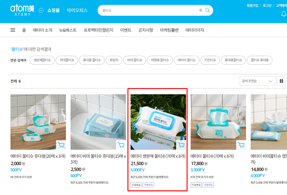 1. 애터미 공식 shop에서 쇼핑을 합니다.