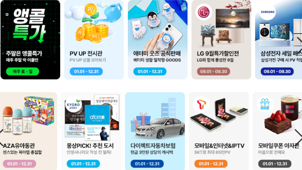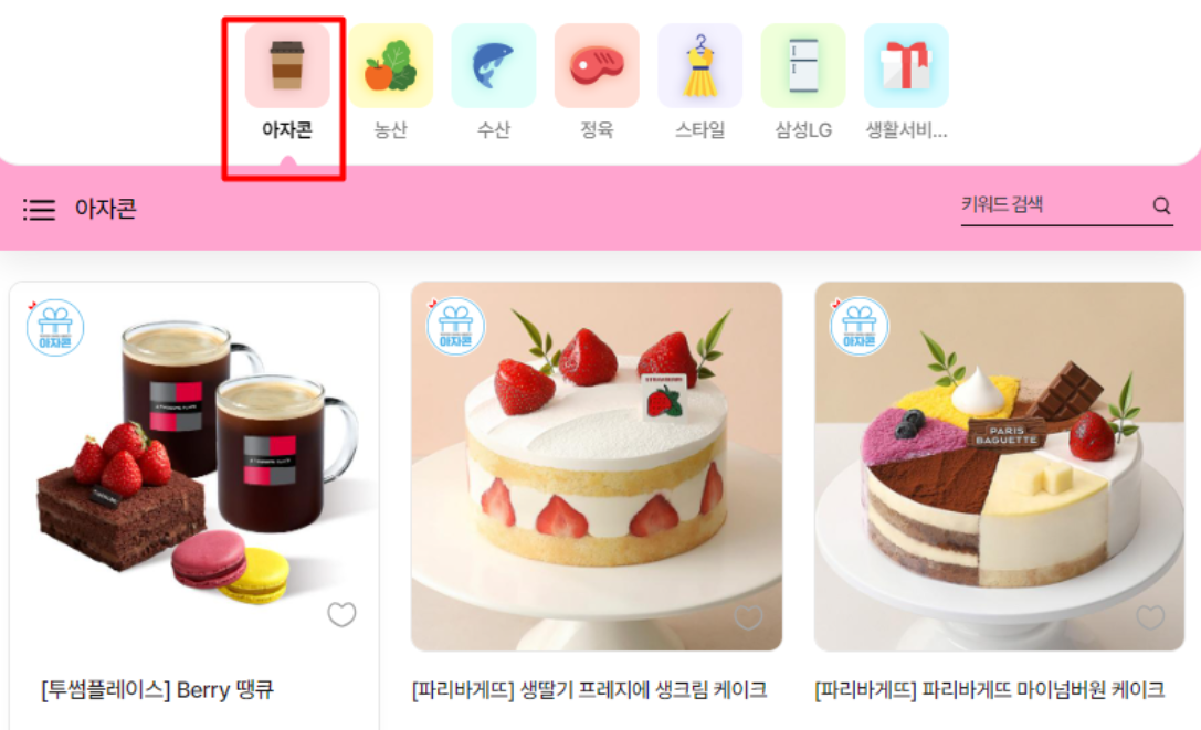 애터미에는 애터미 샵도 있지만 쿠팡 같은 플랫폼인 아자몰도 있습니다.