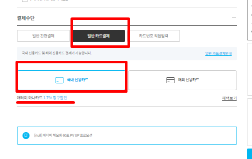 애터미 하나카드로 사용하시면 사용금액의 1.7% 청구할인됩니다.
