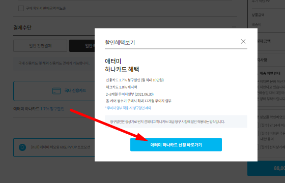 애터미 하나카드로 사용하시면 사용금액의 1.7% 청구할인됩니다.