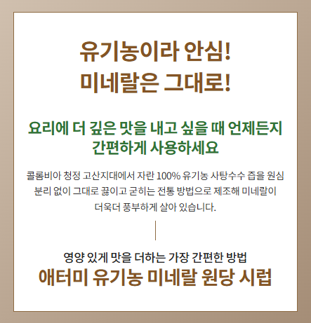 애터미 원당은 콜롬비아 청정지역 유기농 원료로 원심분리 공정을 거치지 않고 만든 미네랄이 풍부한 비정제 원당 시럽 입니다.