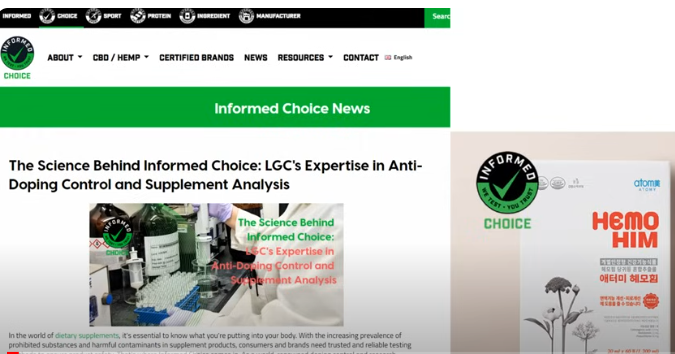 애터미 헤모힘 Informed Choice News에서 반도핑테스트 인증