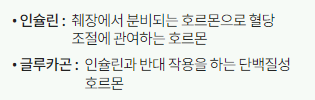 췌장에서 분비되는 호르몬인 인슐린이 포도당을 세포 속으로 보내주는 제어 역할을 하는데, 췌장에 문제가 생겨 인슐린을