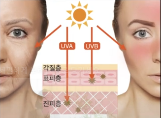 • UVB: 피부 표면에 영향을 주어 화상을 입히는 자외선.