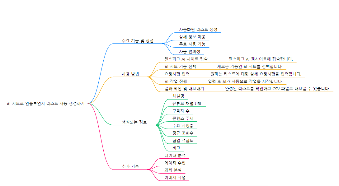 젠스파크 AI 시트는 인플루언서 리스트 외에도 다양한 기능을 제공합니다: