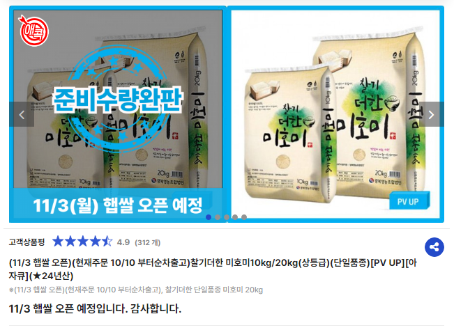 tip : 미호미 쌀을 드셔보셨는데 참 좋았다 하시는분 그런데 회원가입은 하기 싫다 하시는 분~~